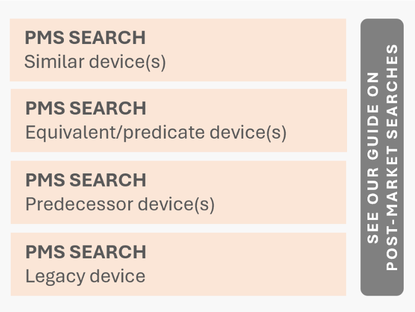 For example, consider a SOTA search on similar devices and a post-market search on the same subject how do you differentiate between them? A simple rule applies: SOTA searches and reviews never include a specific device trade name in their queries. If your search is focused on a particular device, it is almost certainly a post-market search. There is only one exception: when a specific device brand represents the state of the art in the medical field. That, however, is extremely rare.